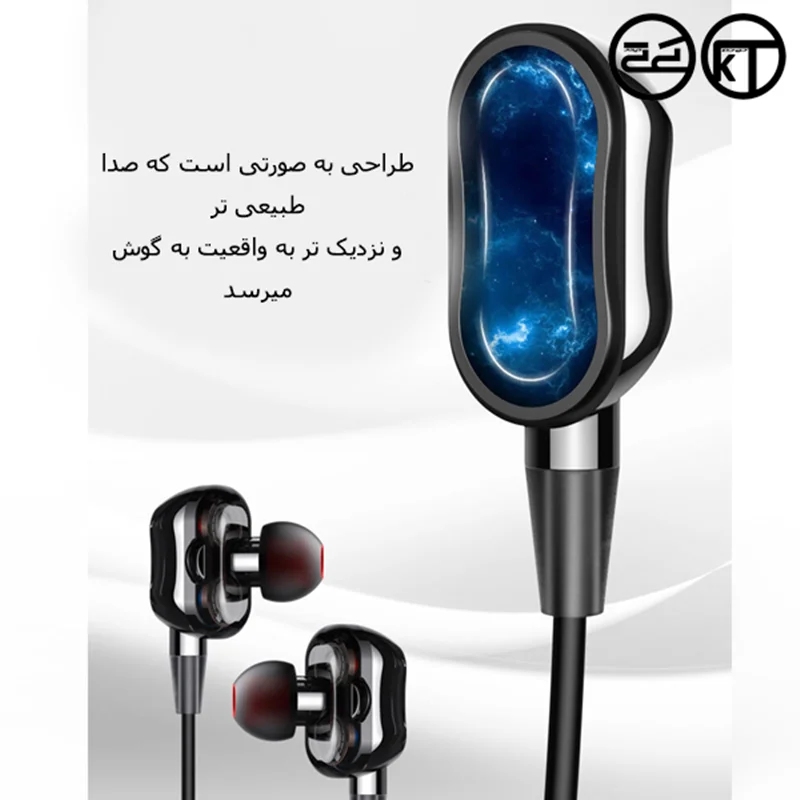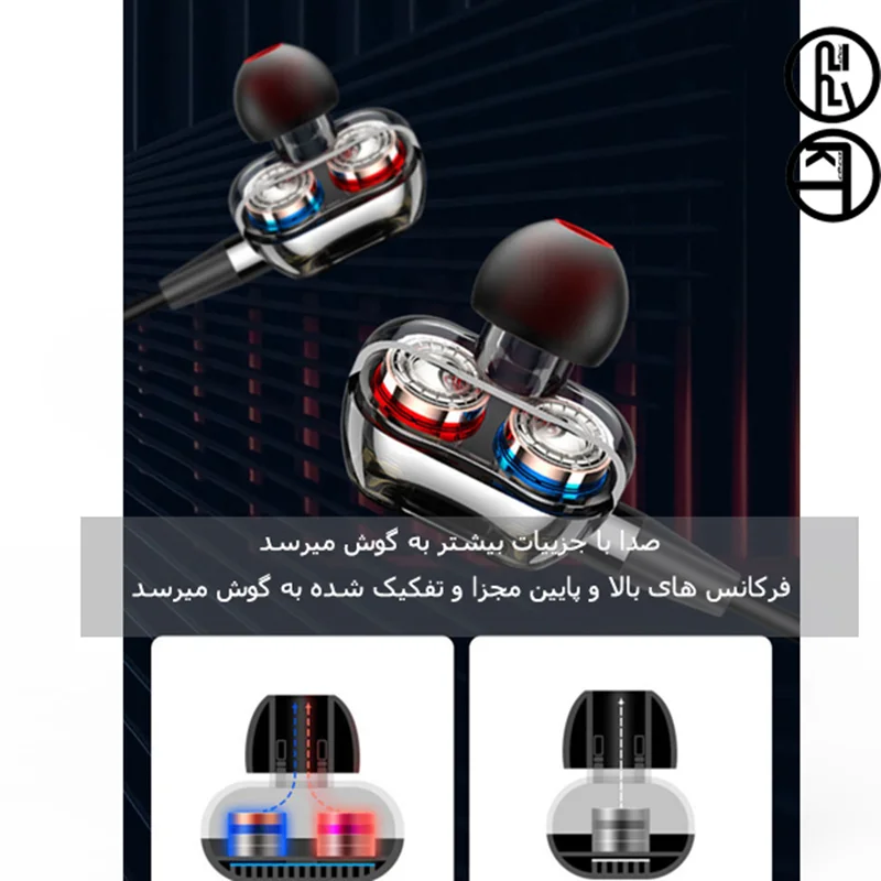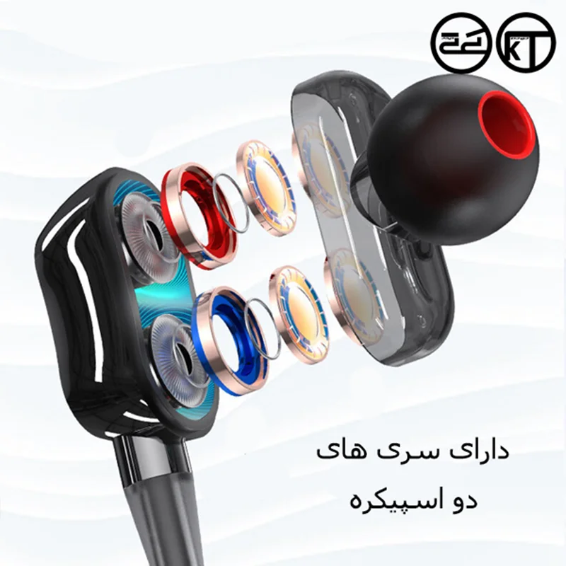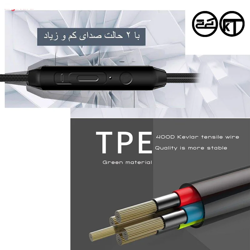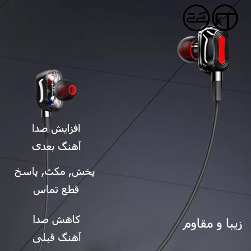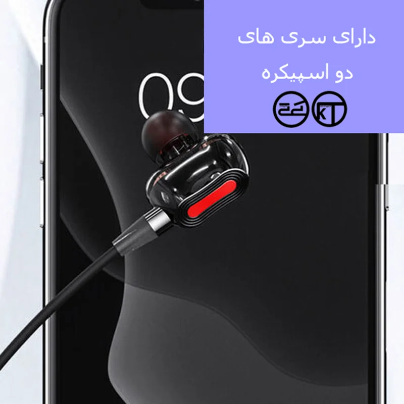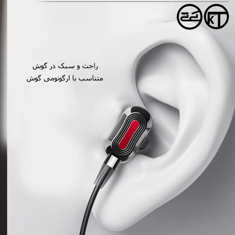 این هندزفری بسیار سبک است و راحت درون گوش چفت میشود و کاربر هنگام استفاده، وزن آن را حس نمیکند. امپدانس این محصول 32 اهم است و بهترین کارایی را با دستگاههای مجهز به این امپدانس ارائه میکند. روکش سیم این هدفون از جنس بسیار مرغوب پی وی سی کشسان و رشته های درون آن بافت های تی پی ای استفاده شده و موفق شده تست های ده هزار بار کشش و خمش را پاس کند.از مزیت های این هندزفری سری های 2 اسپیکره و جک Lشکل است که موجب میشود عمر طولانی تر نسبت به مدل های معمولی داشته باشد.این مدل دارای 2 اسپیکر در هر طرف برای پخش مجزا بیس و تریپل هست و هیچ اغراقی در پخش بیس و یا تریپل ندارد و فقط صدا را با نهایت جزییات میشنوید به صورتی که حتی در بالاترین حد ولووم هم هیچ نت ای از صدا جا نمی افتد.