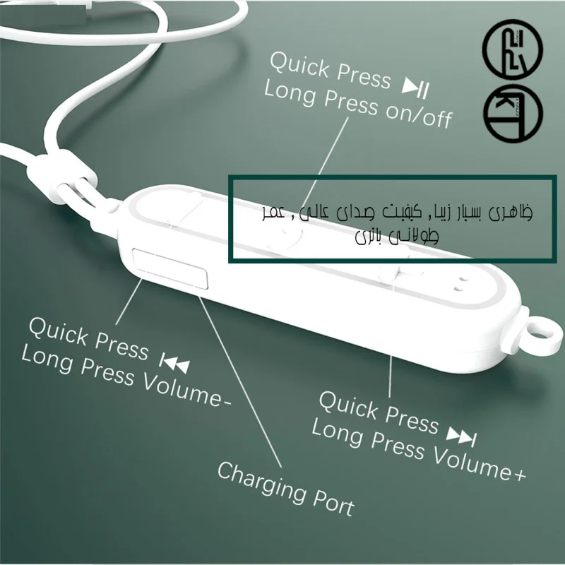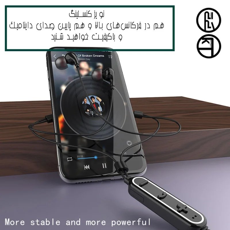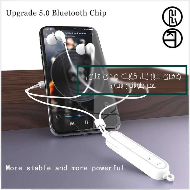 از ویژگی های دیگر این هندزفری نمایش میزان شارژ آن بر روی نمایشگر گوشی موبایل می باشد که لازم است ورژن بلوتوث موبایلتان 5 باشد و همچنین بلوتوث ورژن 5 در مصرف باتری بسیار کم مصرف و دارای قابلیت استند بای برای عمر باتری و قابلیت امنیتی که برای اولین اتصال به هر دستگاه جدید باید کلید روشن شدن هدفون را 8 ثانیه نگه دارید تا برای دستگاه های جدید قابل شناسایی باشد. شارژ دهی این هدفون باتوجه به باتری قوی آن بسیار خوب بوده و در تست ها یک هفته استندبای و با ولوم 70% توانسته حدود 5 ساعت دائما موزیک پخش کند