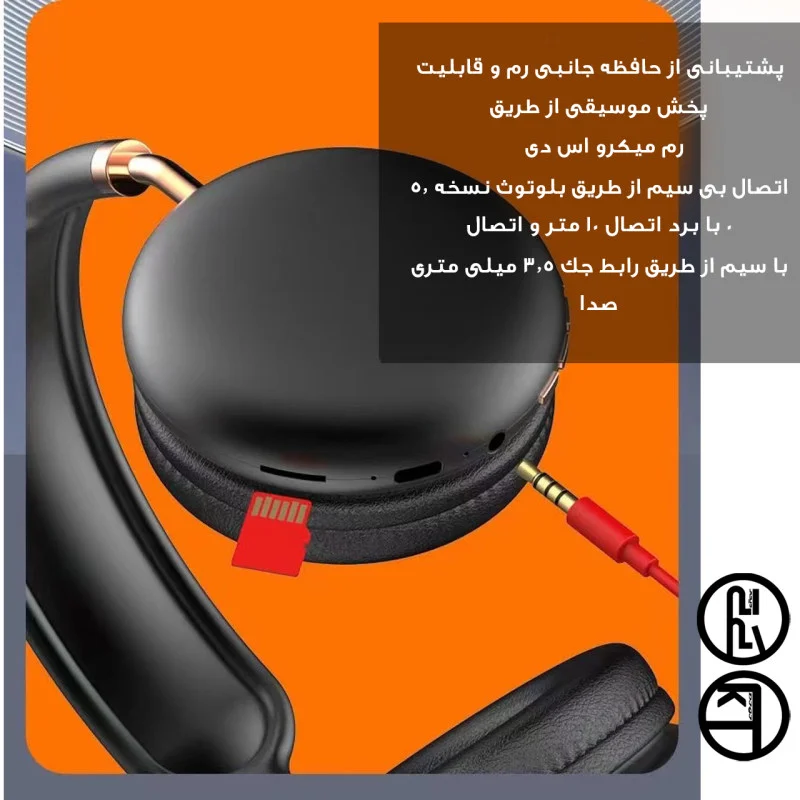 هدفون بلوتوثی کی تی مدل P8 را میتوانید هم بصورت بی سیم استفاده کنید هم با سیم، چون این هدفون با کیفیت، شیار کارت حافظه SD، بلوتوث و جک 3.5 میلی متری رو داره در نتیجه کار برای شما اسان میشود و به راحتی میتوانید به این هدفون وصل بشید و از امکانات ان استفاده کنید همچنین بلوتوث این هدفون تا 10 متر برد دارد و میتوانید در این فاصله موسیقی مورد علاقه خود را بدون قطعی و کاهش کیفیت گوش بدید. جنس بدنه هدفون P8 از پلاستیک با دوام میباشد و به گونه ای طراحی شده است که شما احساس راحتی کنید همچنین کیفیت پخش صدای این هدفون شیک بسیار بالا میباشد و قطعا با هدفون p8 از شنیدن موسیقی خسته نخواهید شد.