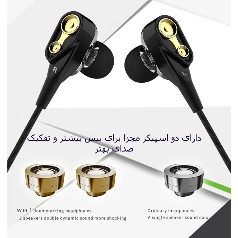 این هندزفری دارای دو اسپیکر در هر طرف برای تفکیک کامل صدا و بیس بهتر می باشد . برای این مدل، یک میکروفون در نظر گرفته شده است تا کاربران قادر به مکالمه با موبایل خود باشند. همچنین یک عدد دکمه برای قطع و وصل کردن صدا در آن تعبیه شده است. با این دکمهها میتوانید به تماسهایتان پاسخ دهید یا مکالمه را قطع کنید.و یک کلید کشویی جهت کاهش و افزایش صدا !