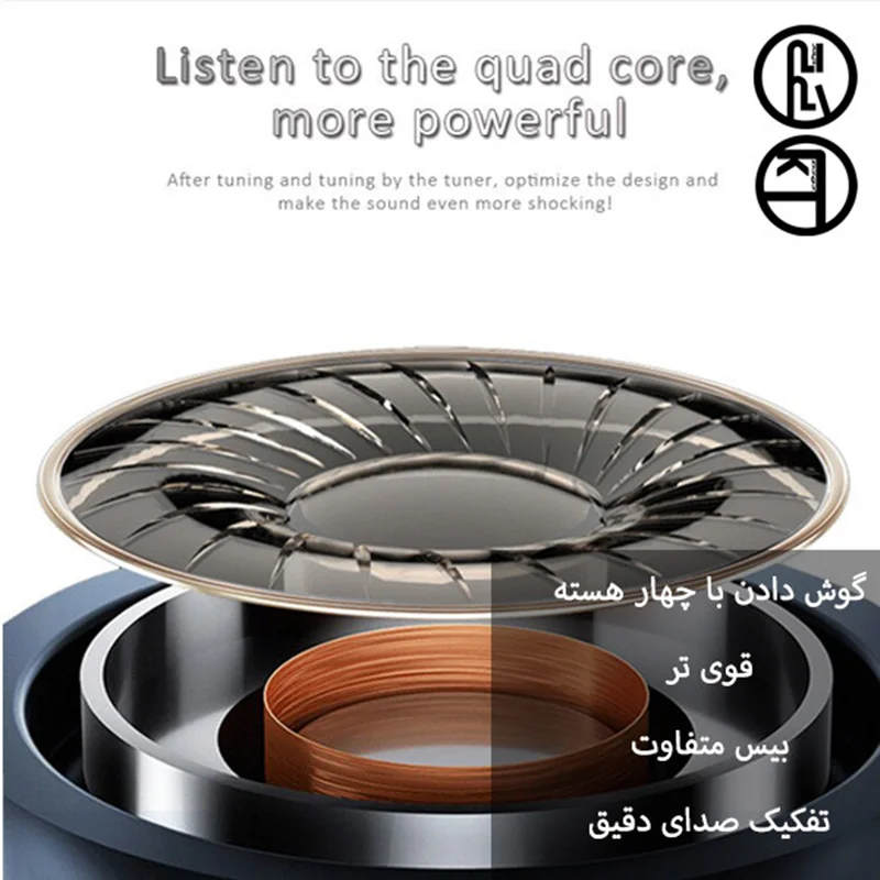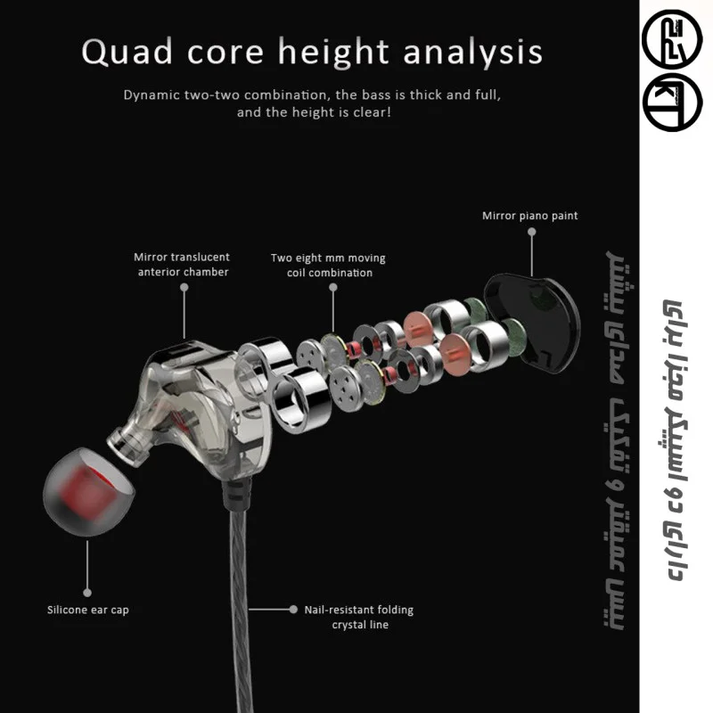 این هندزفری بسیار سبک است و راحت درون گوش چفت میشود و کاربر هنگام استفاده، وزن آن را حس نمیکند. امپدانس این محصول 32 اهم است و بهترین کارایی را با دستگاههای مجهز به این امپدانس ارائه میکند. روکش سیم این هدفون از جنس بسیار مرغوب پی وی سی کشسان و رشته های درون آن بافت های تی پی ای استفاده شده و موفق شده تست های ده هزار بار کشش و خمش را پاس کند.از مزیت های این هندزفری سری های 2 اسپیکره و جک Lشکل است که موجب میشود عمر طولانی تر نسبت به مدل های معمولی داشته باشد.این مدل دارای 2 اسپیکر در هر طرف برای پخش مجزا بیس و تریپل هست و هیچ اغراقی در پخش بیس و یا تریپل ندارد و فقط صدا را با نهایت جزییات میشنوید به صورتی که حتی در بالاترین حد ولووم هم هیچ نت ای از صدا جا نمی افتد.